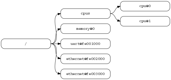 - 루트 노드는 반드시 하나의 /cpus 노드와 최소 하나 이상의 /memory 노드를 포함해야 한다.