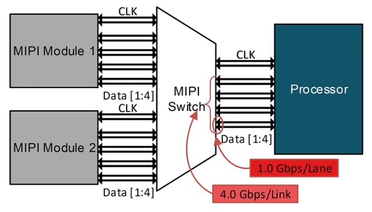 MIPI DPHY는 차동 신호(Differential Signaling)를 기반으로 1~4 lane 구성이 가능하며, 이러한 Data Lane들은 병렬로 동작하여 전체 링크의 총 대역폭을 분산 처리하게 된다.