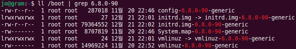 GRUB은 디스크에 저장되어 있는 커널 이미지(vmlinuz)와 임시 루트 파일 시스템인 initramfs(initrd)를 RAM(메모리)으로 복사한다. 이 파일들은 /boot 디렉토리에서 실체를 확인할 수 있다.