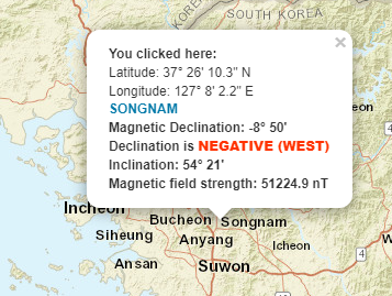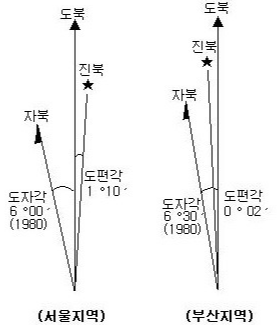 아래 사이트에서 지역별 자편각을 확인할 수 있다.