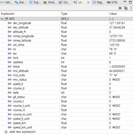 이중에서 위도와 경도를 얻어낼 수 있는 것은 $GPGGA와 $GPRMC인데 $GPGGA 데이터를 사용하였다.