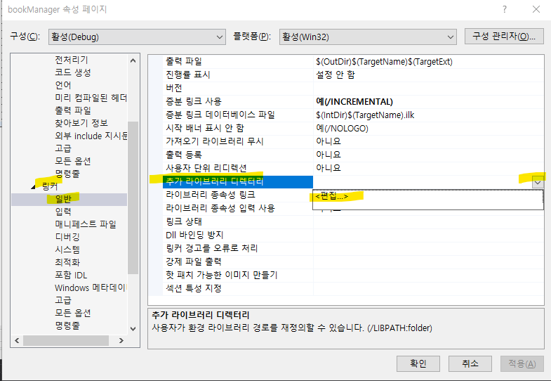 링커 - 일반 - 추가 라이브러리 디렉터리