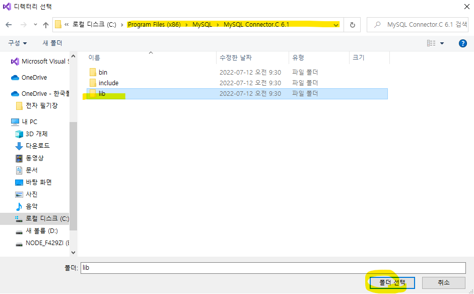 커넥터는 Visual Studio 컴파일 버전에 맞춰 x86으로 설치했기 때문에 Program Files (x86)안에 있다.