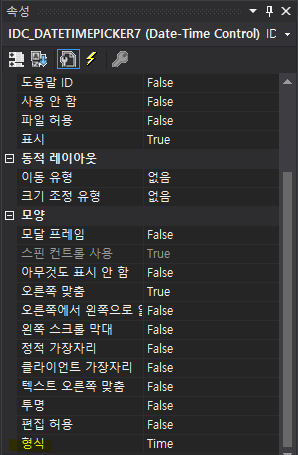 Time 형식은 디폴트가 한글로 오전/오후가 출력이 되는데 이를 24시간 표시형식으로 바꾸기 위해 OnInitDialog() 함수에서 아래와 같은 코드를 추가했었다.