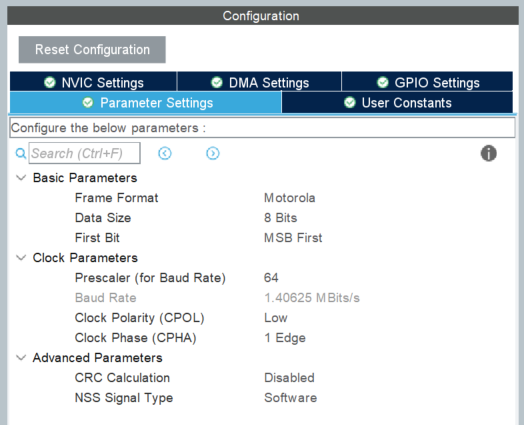 Prescaler 설정에 따라 Baud Rate 가 바뀌는데 적당히 선택해 주었다. CPOL과 CPHA는 칩의 데이터 시트를 읽고 설정해준다.