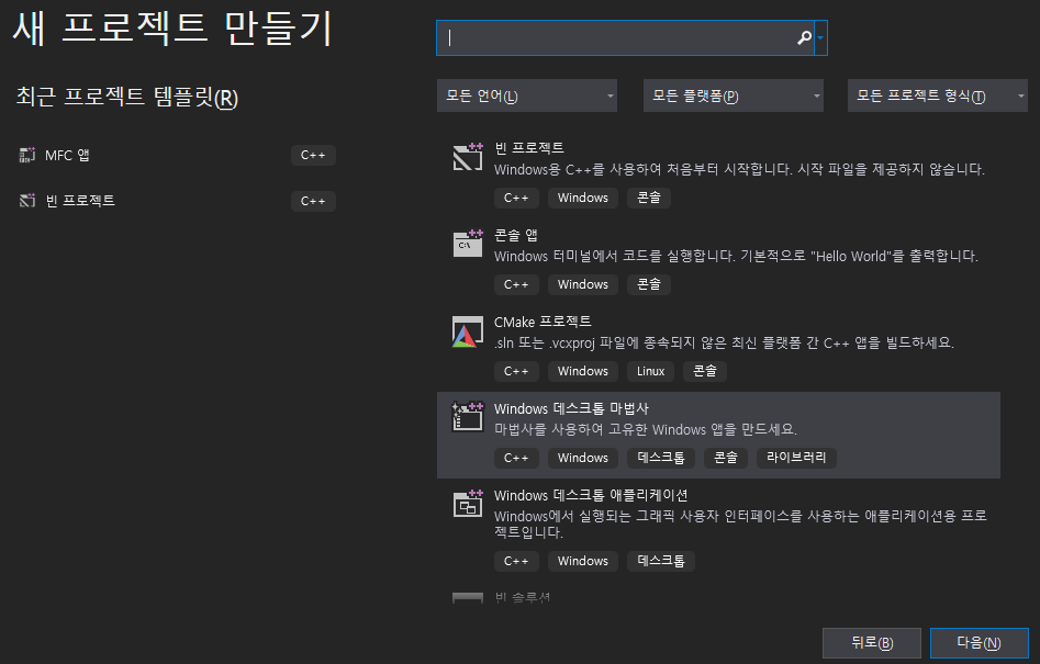 아까 만들어둔 기본 템플릿을 사용하면 프로젝트 속성, 기본 코드, 파일 등이 저장된 상태로 생성할 수 있다.