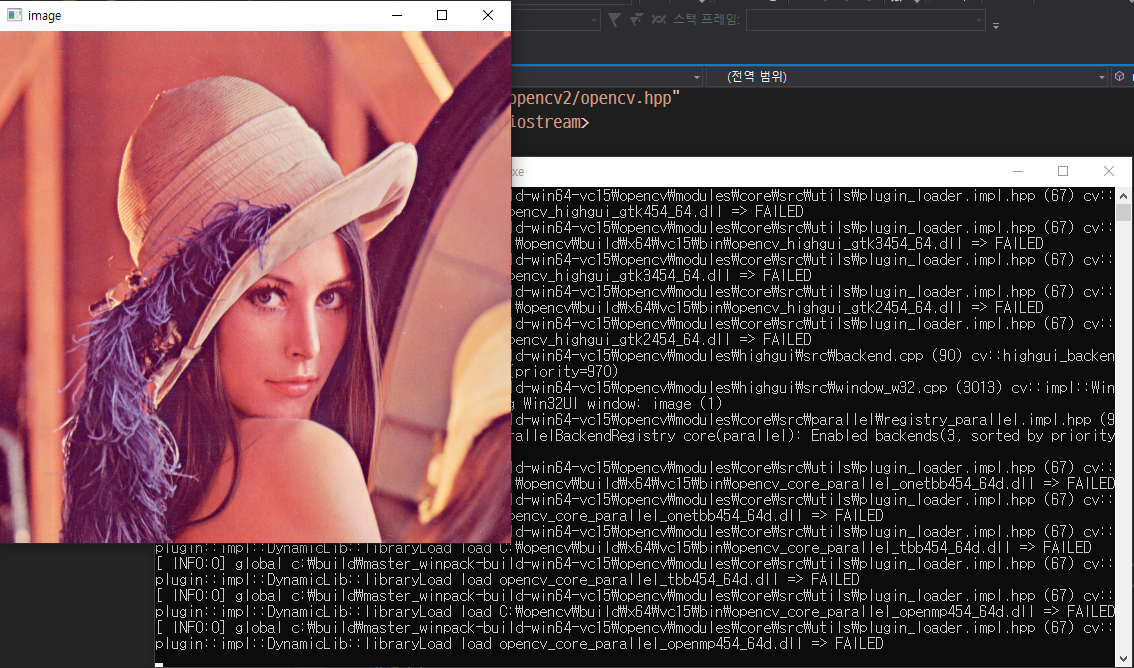 실행 화면 lenna.jpg 파일이 생성된 것을 확인할 수 있다.