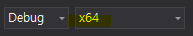 구성은 모든구성 또는 활성(Debug)로 하고 플랫폼이 x64로 되어있는지 확인함