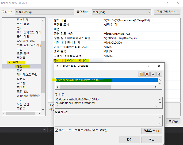 또는 $(OPENCV_DIR)\x64\vc15\lib;
