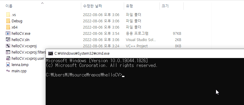 디버그 모드로 빌드 후 프로젝트 폴더 - x64 - Debug 폴더 안에 있는 .exe 파일을 사진파일이 있는 프로젝트 폴더 안으로 꺼내옴