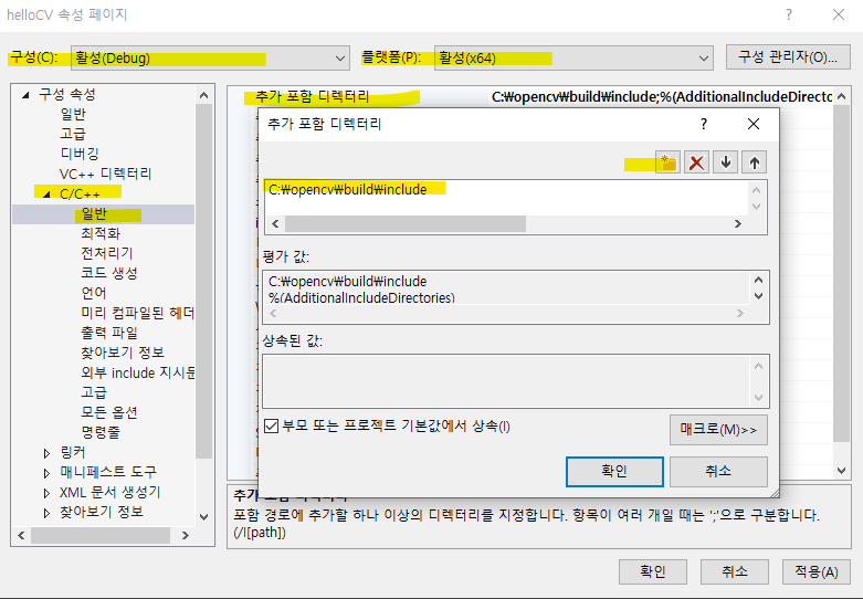 C/C++ - 일반 - 추가 포함 디렉터리에서
