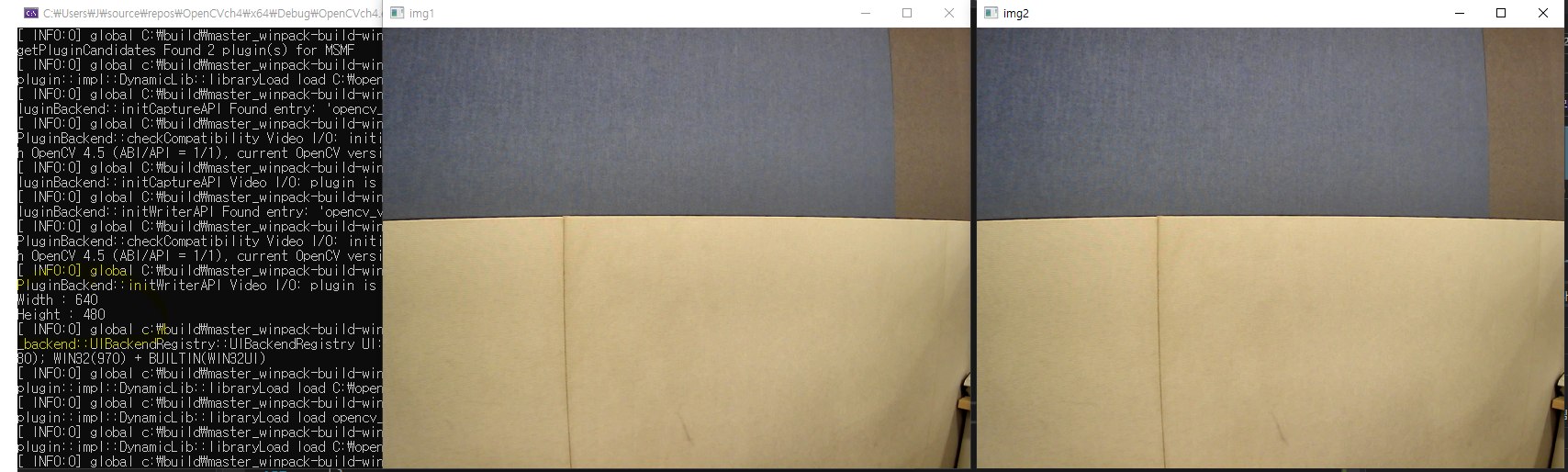 1. 웹캠으로부터 정지 영상 프레임을 두 번 받아와 각기 다른 창에 띄우는 예제