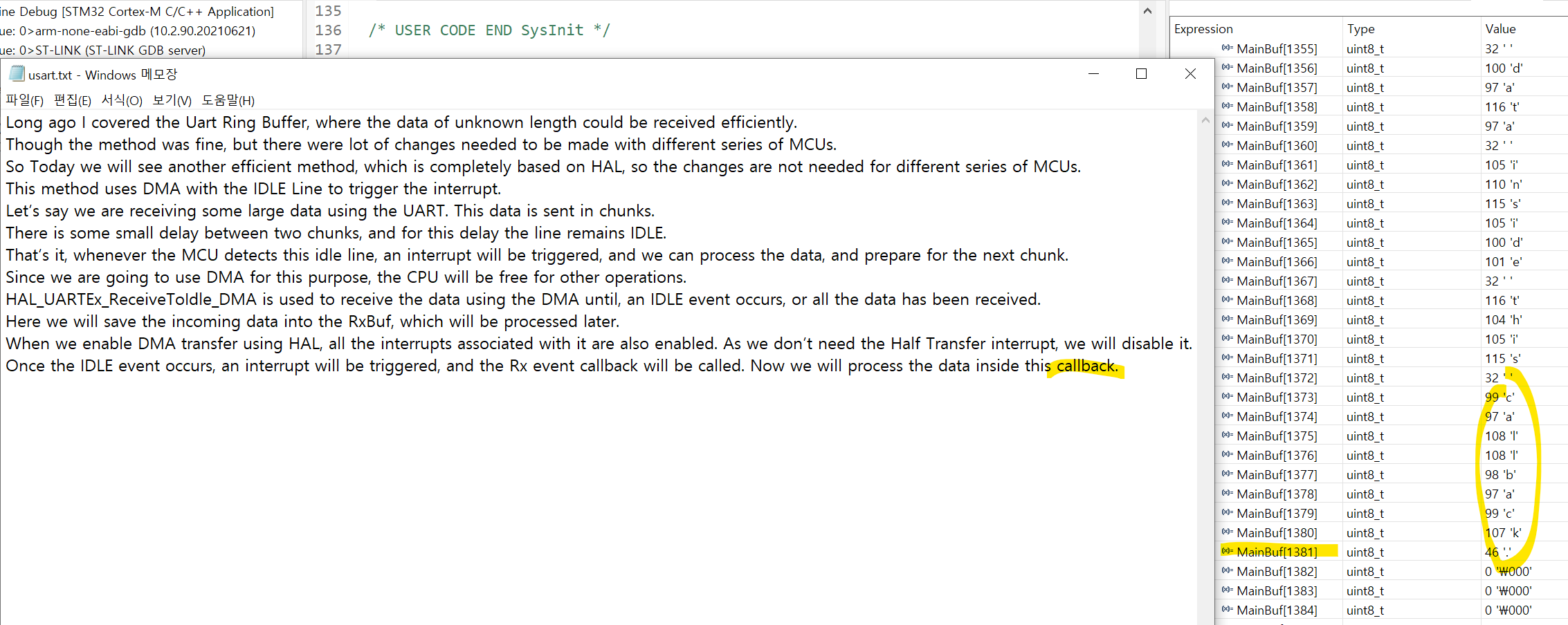 코드 출처 : https://controllerstech.com/uart-dma-with-idle-line-detection/