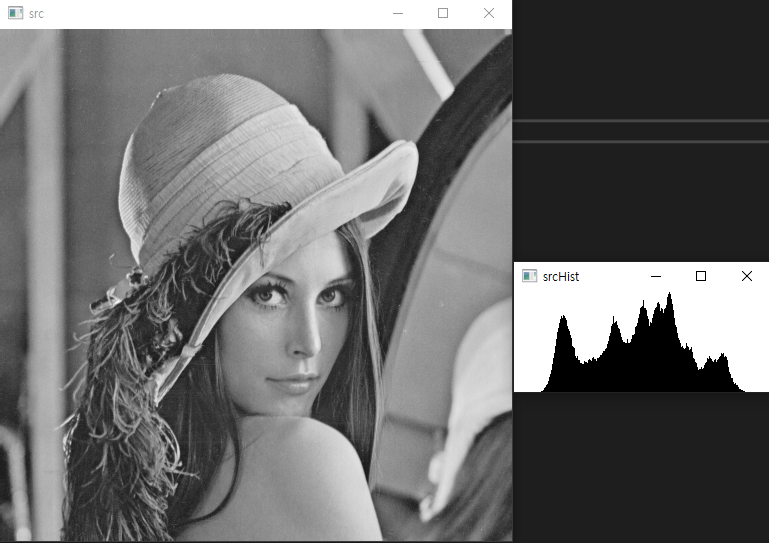 // 영상의 히스토그램(Histogram)이란 영상의 픽셀값 분포를 그래프 형태로 표현한 것을 의미함
