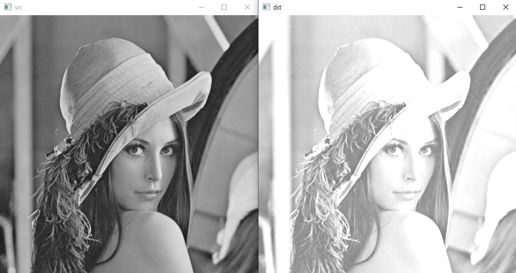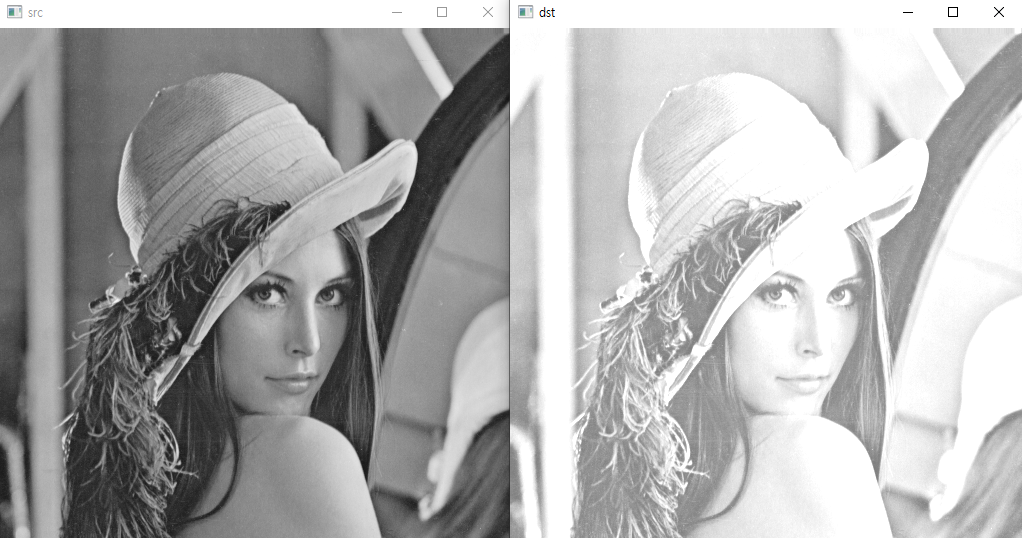 Mat src = imread("lenna.bmp", IMREAD_GRAYSCALE);