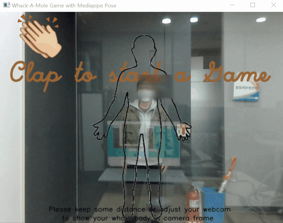 cv2.imshow('Whack-A-Mole Game with Mediapipe Pose', cv2.resize(image, None, fx=2.0, fy=2.0))