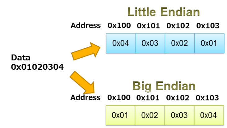 빅 엔디안은 메모리의 Lower Address 에 MSB (최상위비트/Most Significant Bit) 부터 저장하는 방식이고,