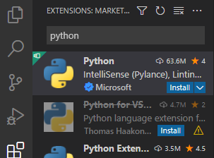 Extension 에서 Python 설치
