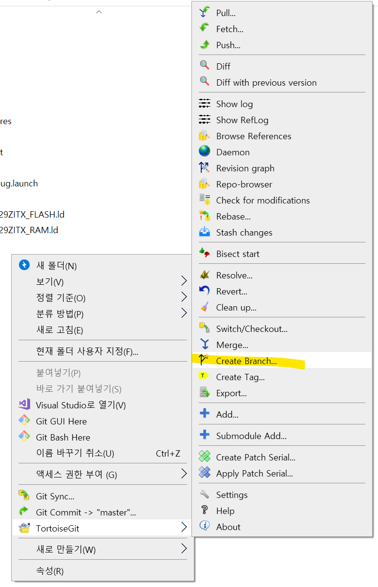 1. Create Branch 클릭