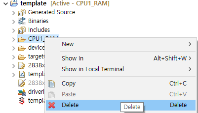 이전 빌드로 생긴 CPUx_RAM 또는 CPUx_FLASH 폴더는 지워준다.