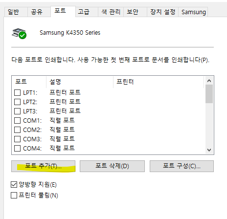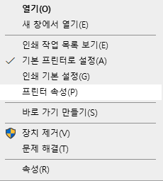 제어판 - 프린터 - 해당 프린터 오른쪽 클릭해 프린터 속성
