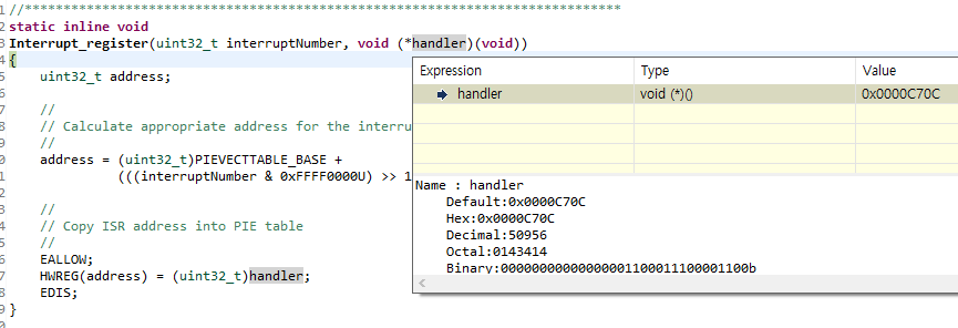 참고로 Interrupt_register() 함수를 호출할 때는 두번째 매개변수로 핸들러 함수명 앞에 & 를 붙이든 안붙이든 함수의 주소가 전달되는 것은 똑같다. 근데 예제를 보면 앞에 &를 붙이는 게 표준인 것같다.
