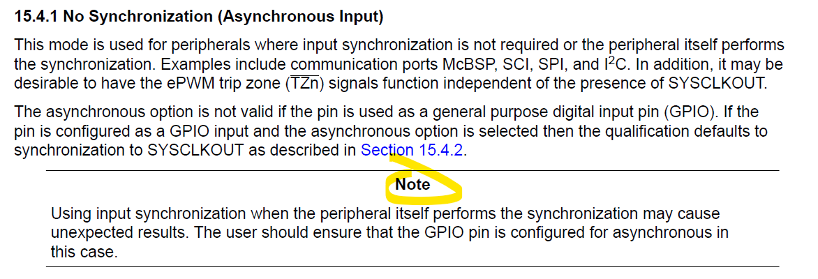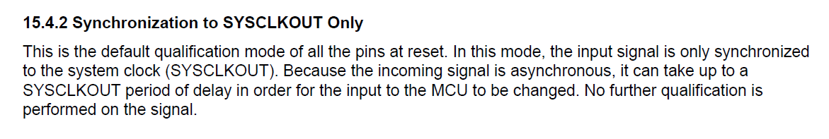 참고로 Qualification Mode는 디폴트가 Synchronization to SYSCLKOUT Only 이다. 그냥 단순히 SYSCLK에 동기화해서 들어오는 신호를 입력받겠다는 것이다.