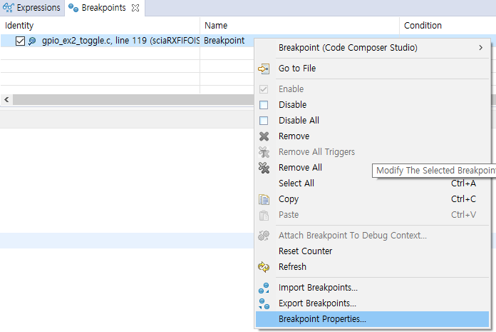 Breakpoint Properties 설정