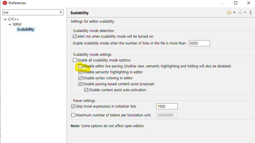 CCS에서 Outline이 뜨지 않을때, 해당부분을 체크 해제하면 된다.
