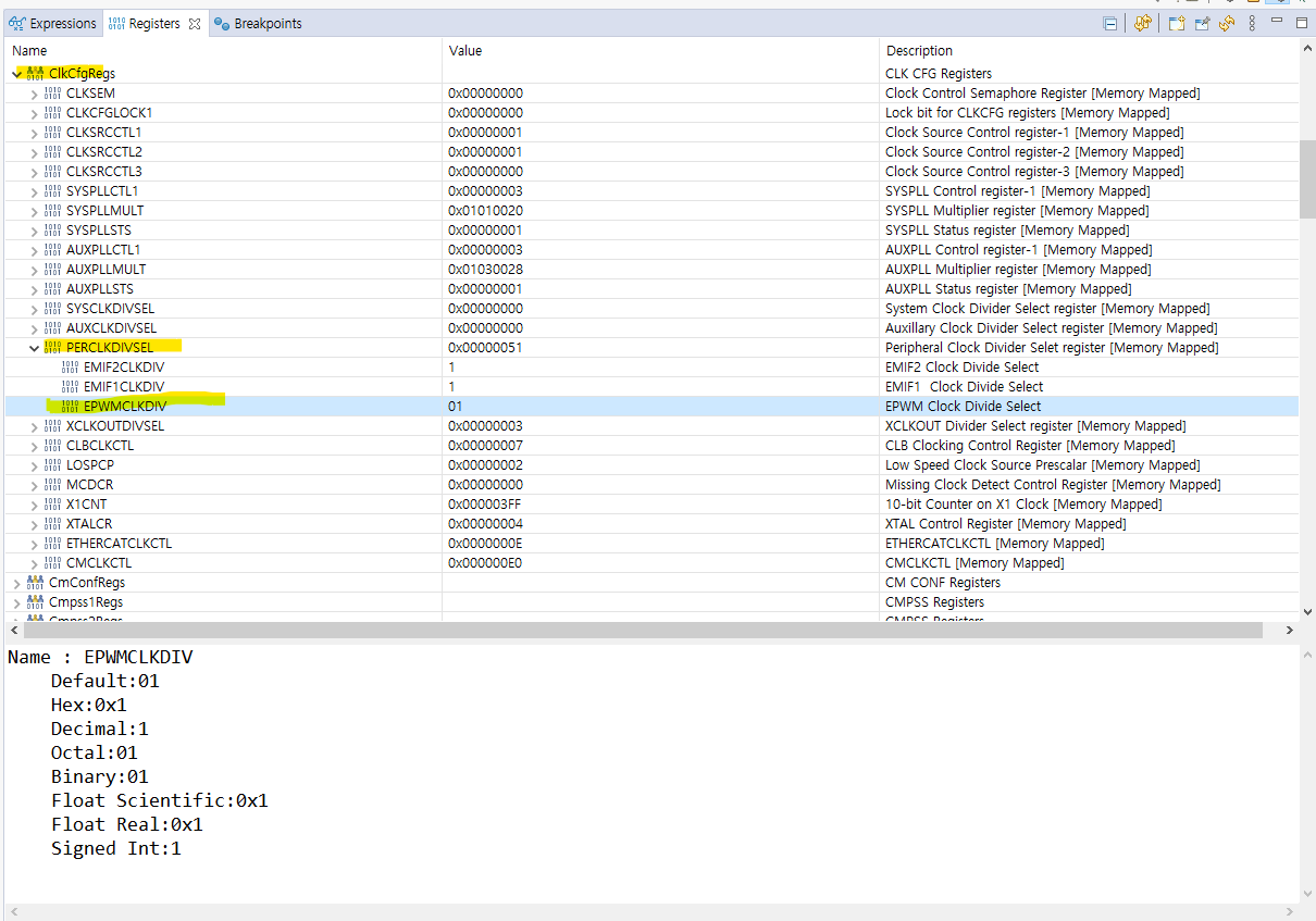 디폴트 값을 변경하려면 SysCtl_setEPWMClockDivider()를 통해 할 수 있다.