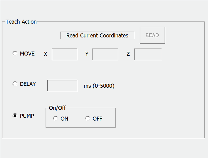 라디오 버튼을 MOVE, DELAY, PUMP 이렇게 3개를 만들었다.