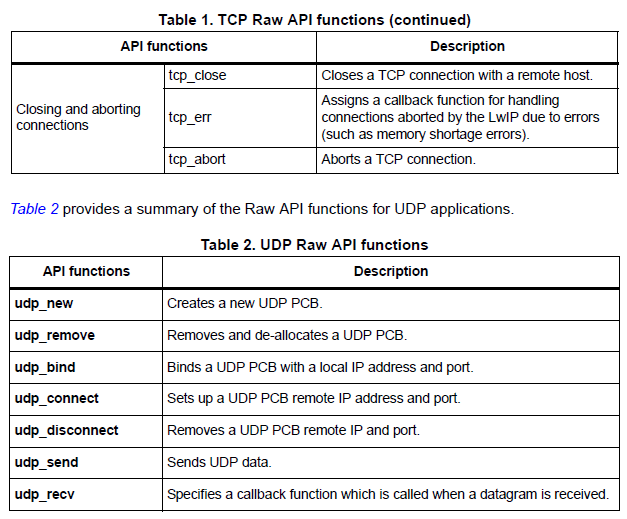 - Raw API : Native LwIP 로 event callback 형식으로 동작되며 최고의 성능을 제공하지만 사용하기 조금 복잡하다.