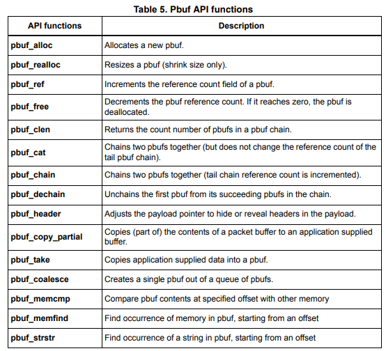 pbuf 관련 API
