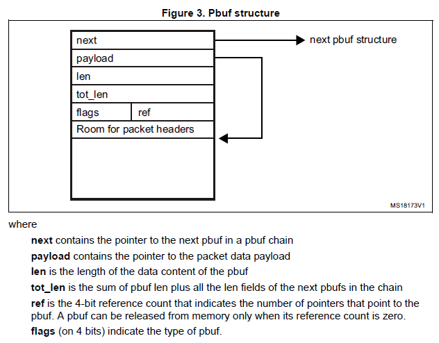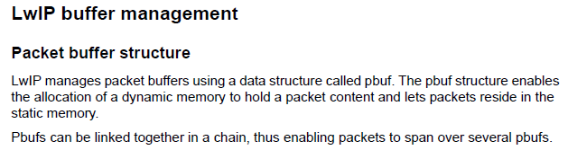 LwIP는 pbuf 라는 구조체를 사용하여 링크드 리스트 형식으로 패킷 버퍼를 관리한다.