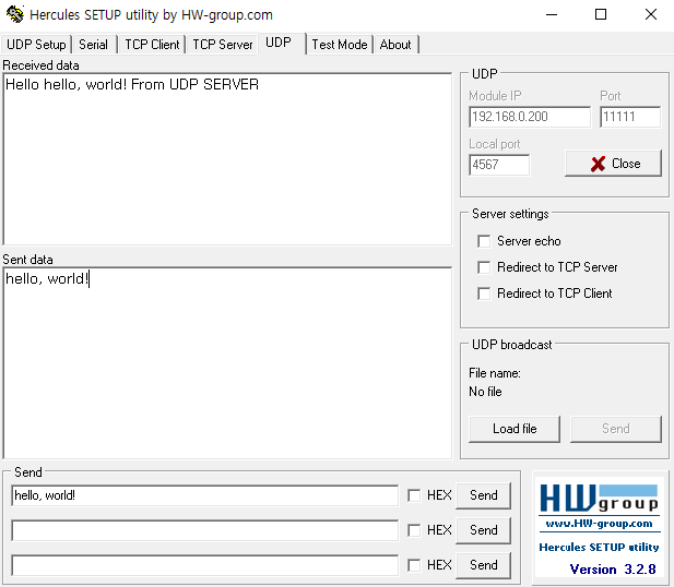 다음 Hercules 를 통해 UDP로 데이터를 송수신해보자.