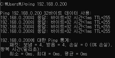 cmd 창에서 해당 주소로 핑테스트를 한다.