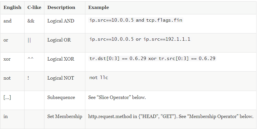 https://www.wireshark.org/docs/wsug_html_chunked/ChWorkBuildDisplayFilterSection.html