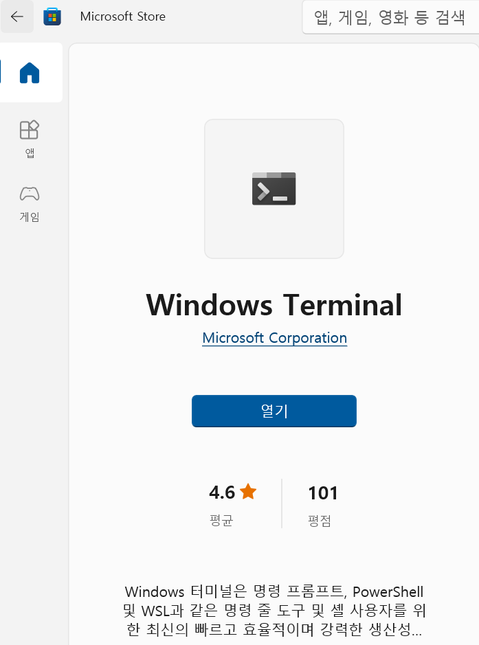 8. Microsoft Store 에서 Windows terminal을 설치한다.
