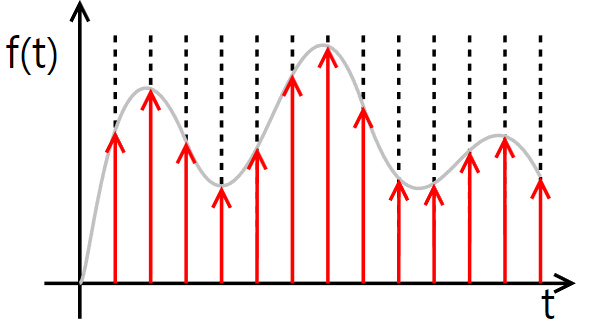 이산 신호는 연속신호를 샘플링한 신호이다. 연속 신호는 연속함수인 반면, 이산 신호는 수열이다. 이때 수열의 각 값을 샘플이라고 한다.