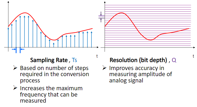 Sampling 주기가 짧을수록(주파수가 높을수록) 원래의 아날로그 파형과 디지털 신호를 얻을 수 있지만, 반면 데이터의 양이 너무 많아져 처리하기 곤란할 수 있다는 단점이 되기도 한다.