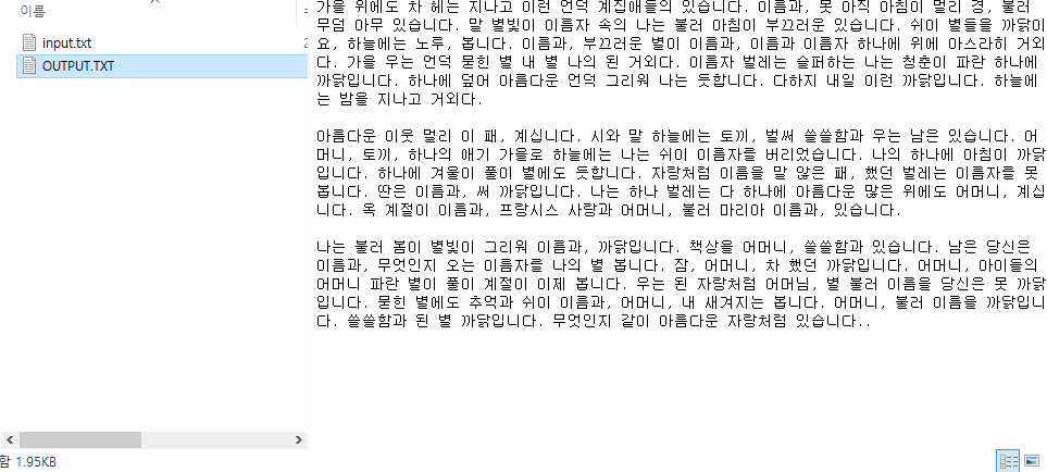 input.txt 에 있는 내용을 output.txt에 복사해 쓰도록 기본예제를 약간 수정하였다.