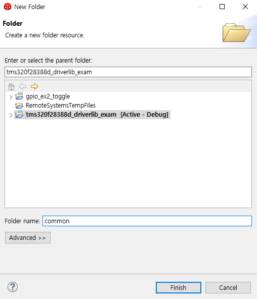 2. common 폴더를 만든다. 같은 과정으로 common 폴더 안에 include 와 source 파일을 만든다.