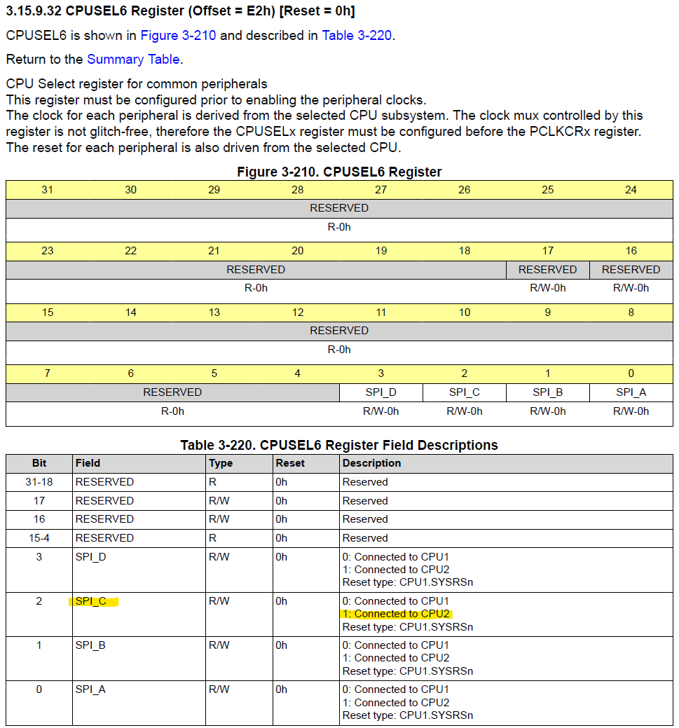 SysCtl_selectCPUForPeripheral(SYSCTL_CPUSEL6_SPI, 3, SYSCTL_CPUSEL_CPU2);