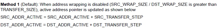 ✔ 만약, SRC/DST_WRAP_SIZE 가 TRANSFER _SIZE 값보다 크게 설정되어 있다면 WRAP 기능이 disabled 된거나 마찬가지다.
