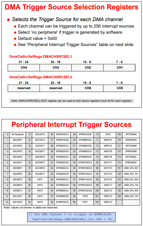 다음은 2838x의 Workshop 자료이긴한데 DMA 레지스터에 관한 설명이다.