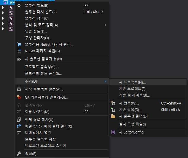 솔루션 우클릭 - 추가 - 새 프로젝트