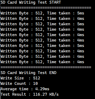 print("SD Card Writing Test END\r\n");