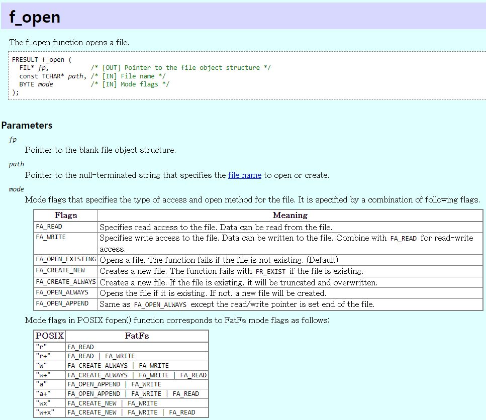 fresult = f_open(&g_sFileObject, g_cTmpBuf, FA_WRITE | FA_OPEN_ALWAYS);