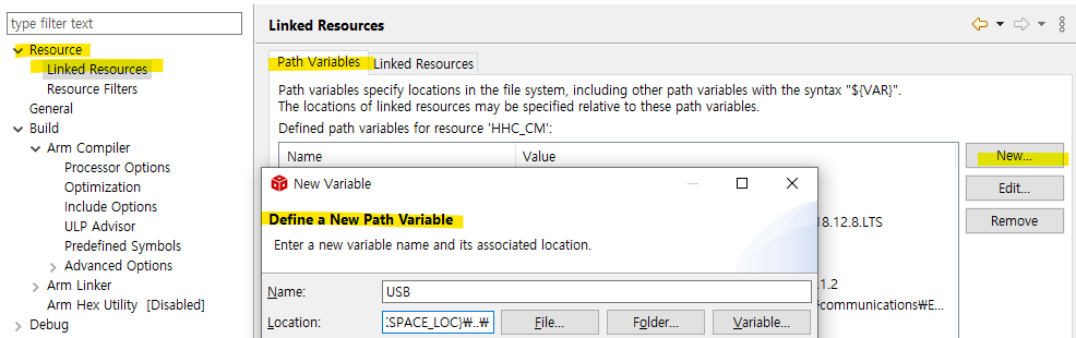다음 헤더파일을 찾을 수 있게 USB_LOC 와 USB_LOC\include 를 include options에 추가해준다.