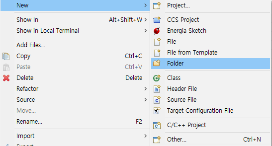 원본이 변경되지 않게 복사해서 워크스페이스로 가져온다. 이중에서 필요한건 include와 lib 폴더이다. docs에는 TI사에서 만든 USB 라이브러리에 대한 매뉴얼이 포함되어 있다. 나머지는 삭제하거나 빌드제외하면 되는데 source같은 경우 참고하면서 보려고 빌드제외 해두었다.